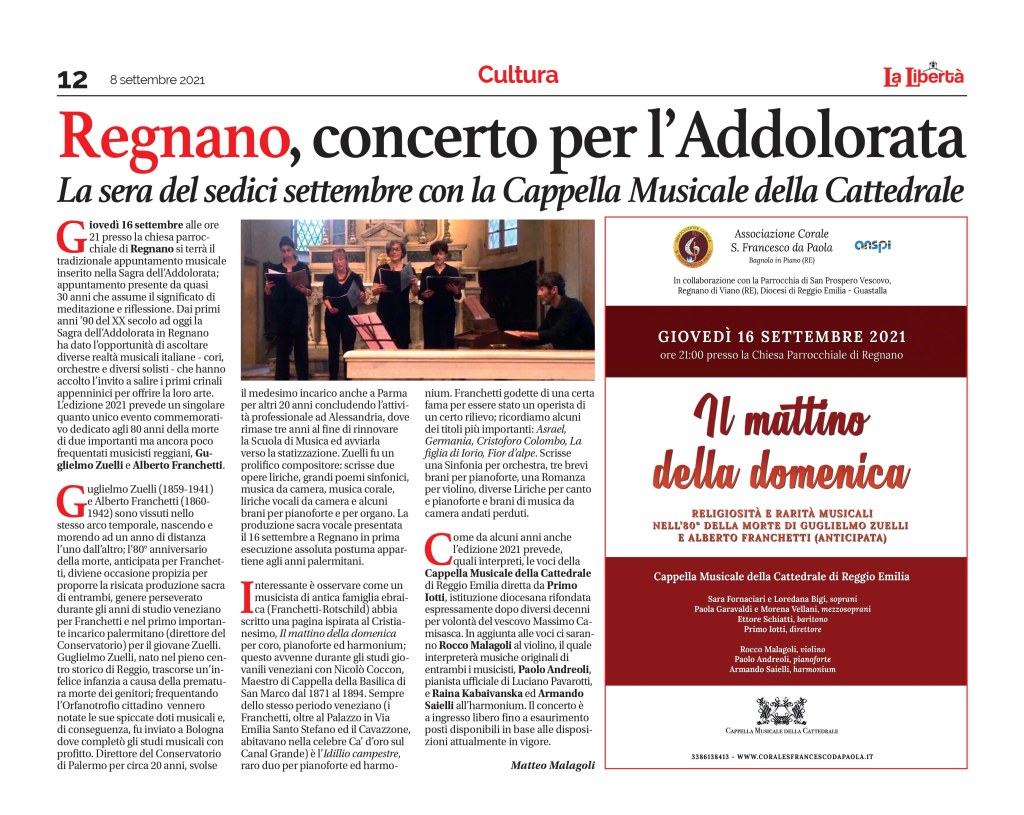 Guglielmo Zuelli (1859-1941) e Alberto Franchetti (1860-1942) sono vissuti nello stesso arco temporale nascendo e morendo ad un anno di distanza l’uno dall’altro. L’occasione dell’80° della loro dipartita, volutamente anticipata per Franchetti, offre l’occasione per proporre la risicata produzione sacra di entrambi, genere perseverato durante gli anni di studio veneziano per Franchetti e nel primo importante incarico palermitano (Direttore del Conservatorio) per il giovane Zuelli.