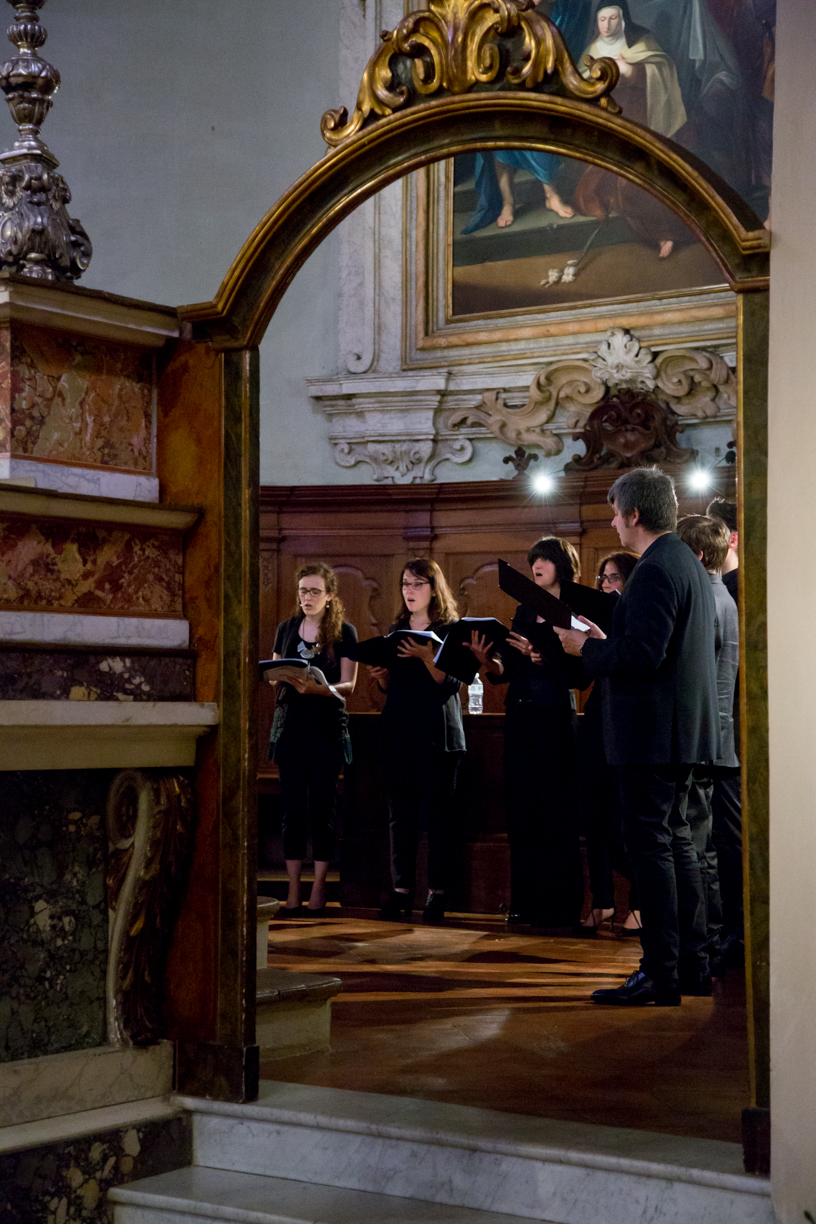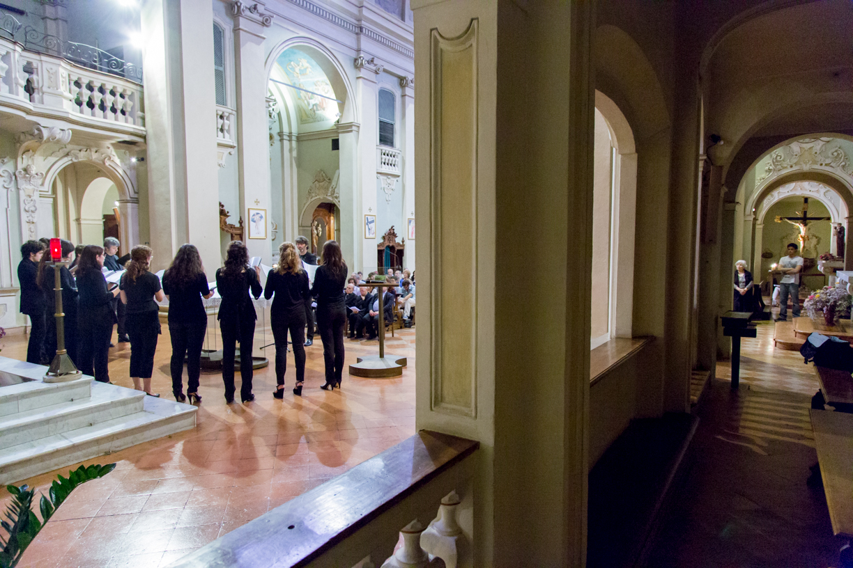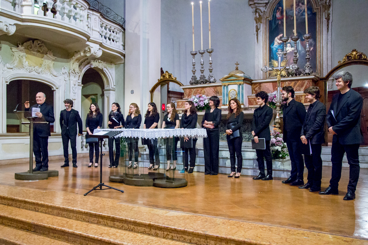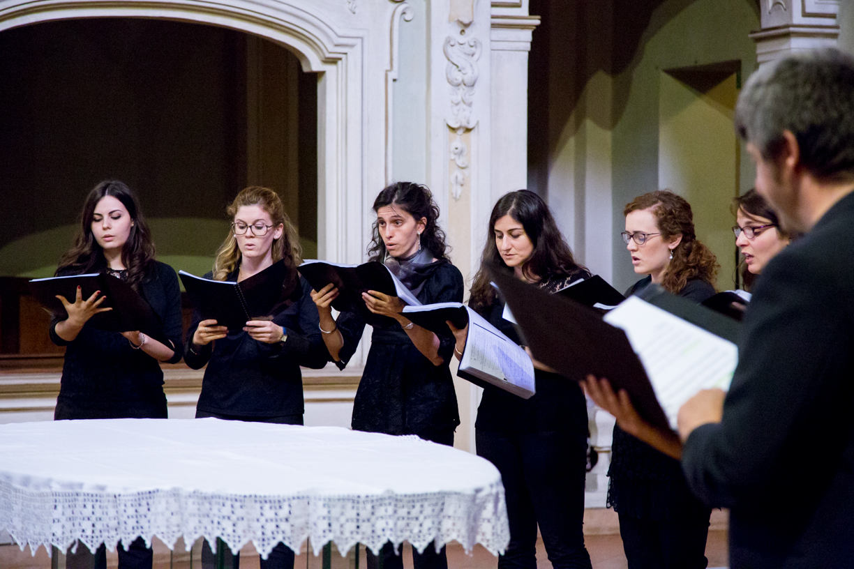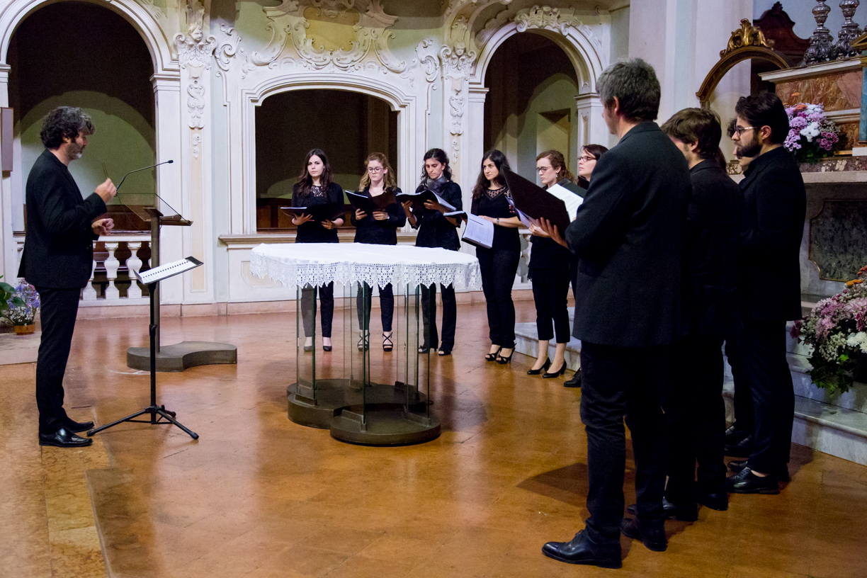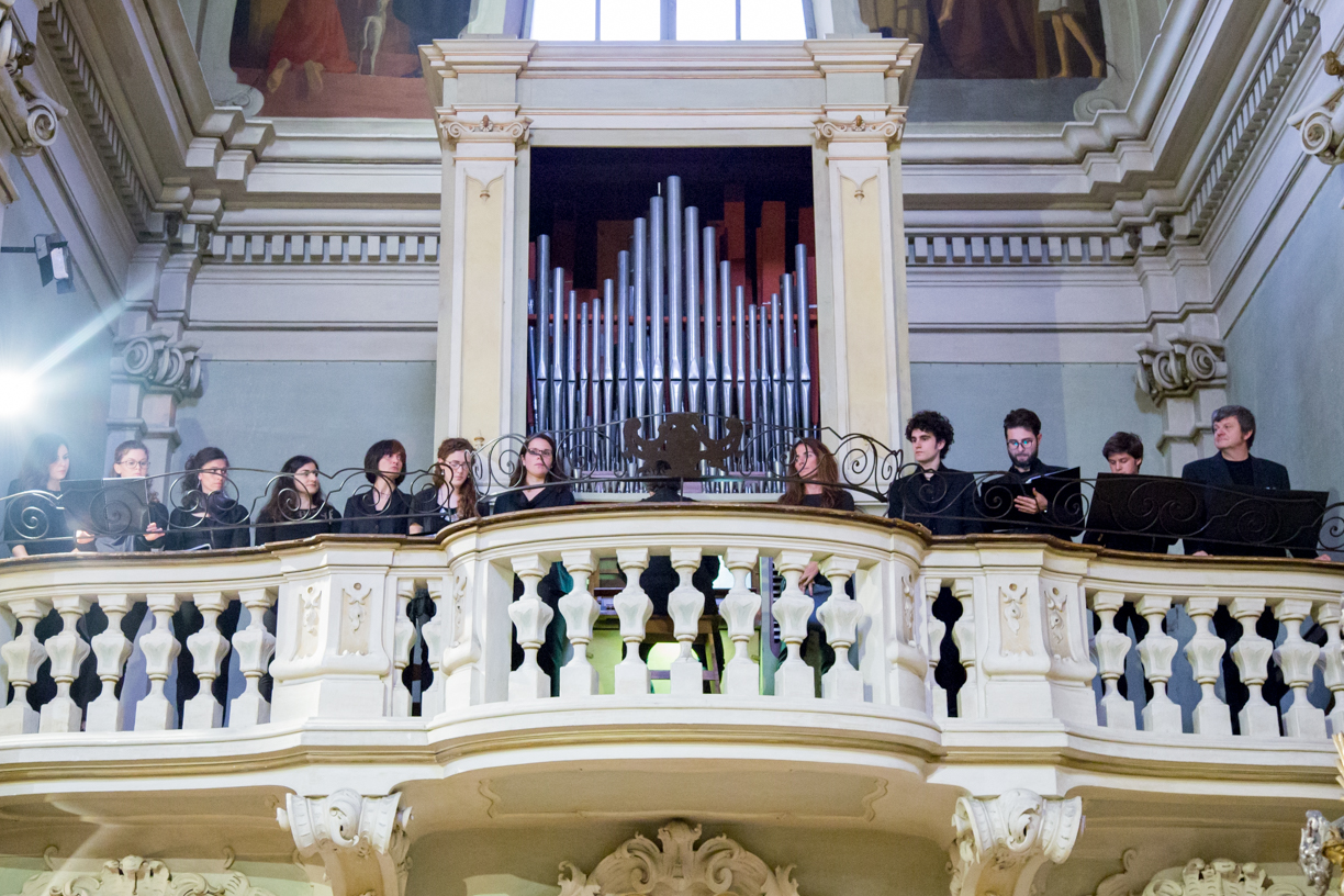 Fotografie del concerto Passione, morte e risurrezione, in canto gregoriano e polifonia eseguito domenica 30 Settembre 2018 nella splendida chiesa dei Santi Girolamo e Vitale a Reggio Emilia, nell’ambito della Rassegna Soli Deo Gloria – Organi, Suoni e Voci della Città