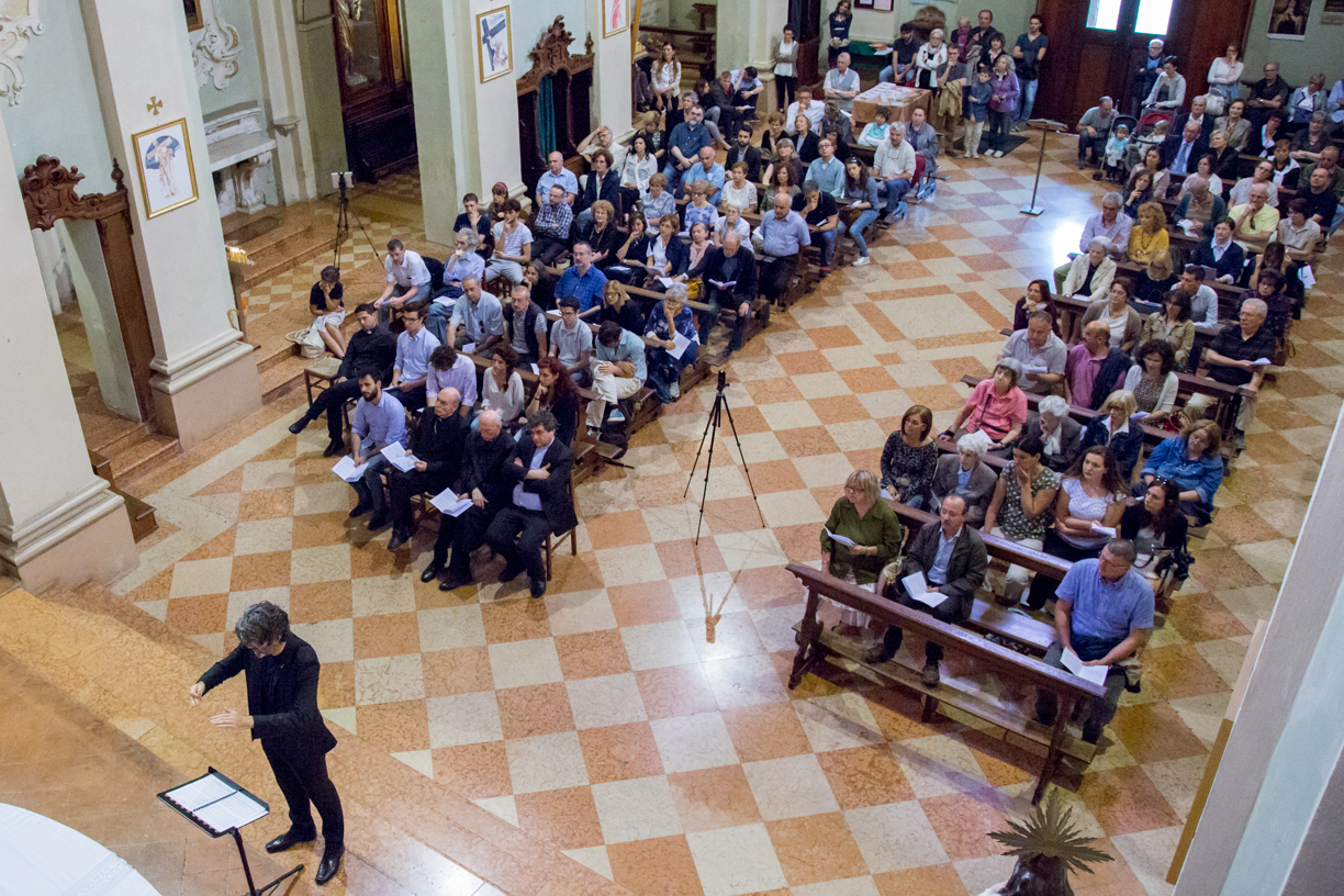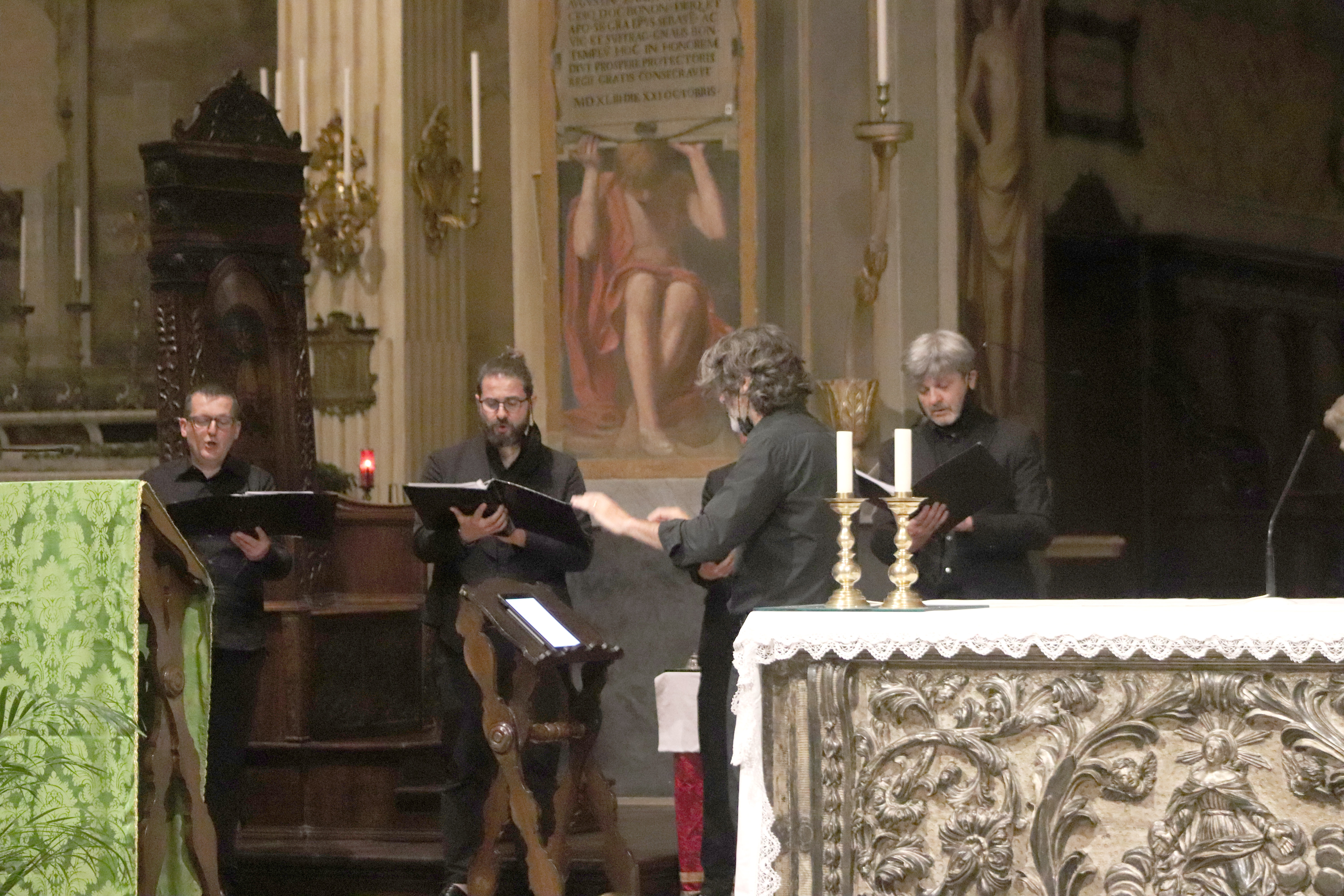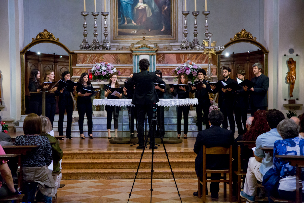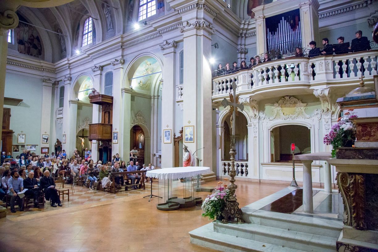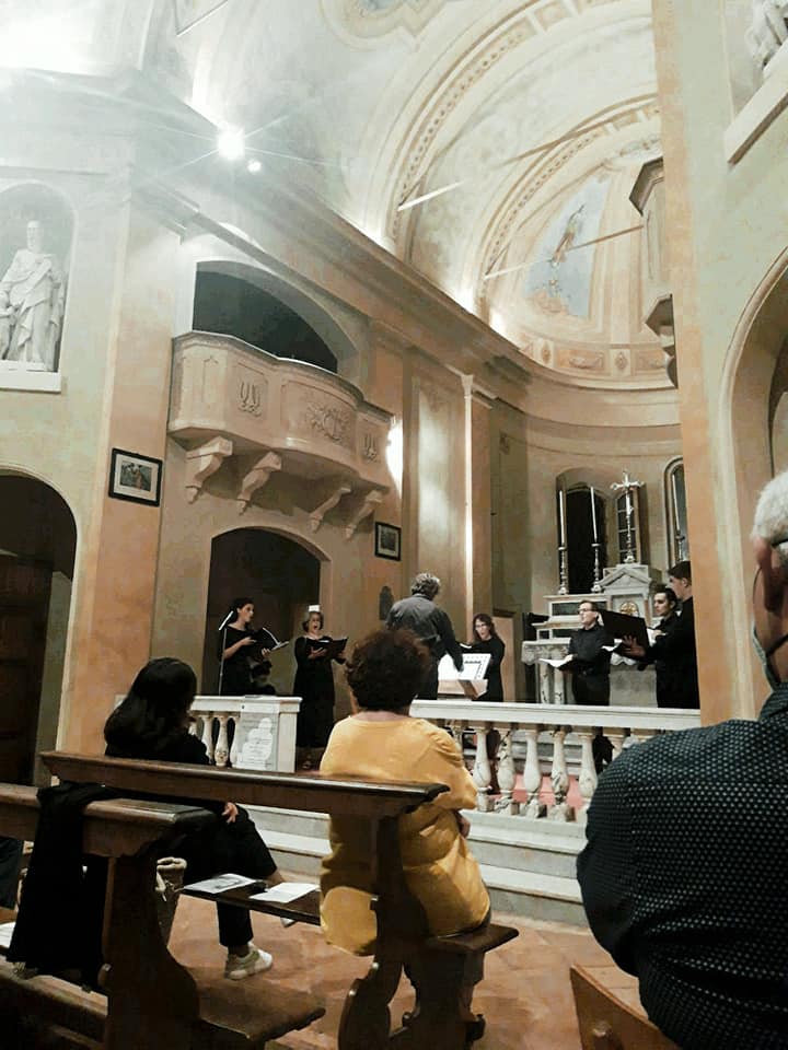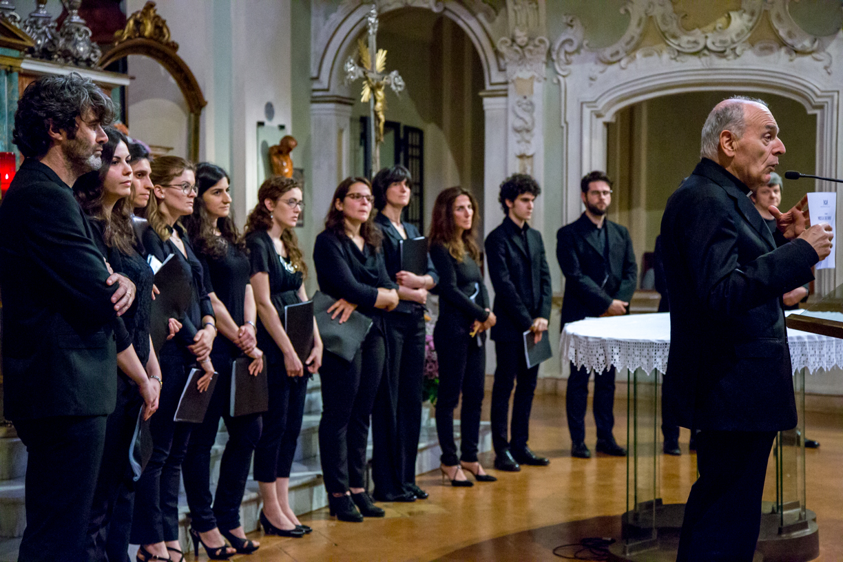 Fotografie del concerto Passione, morte e risurrezione, in canto gregoriano e polifonia eseguito domenica 30 Settembre 2018 nella splendida chiesa dei Santi Girolamo e Vitale a Reggio Emilia, nell’ambito della Rassegna Soli Deo Gloria – Organi, Suoni e Voci della Città