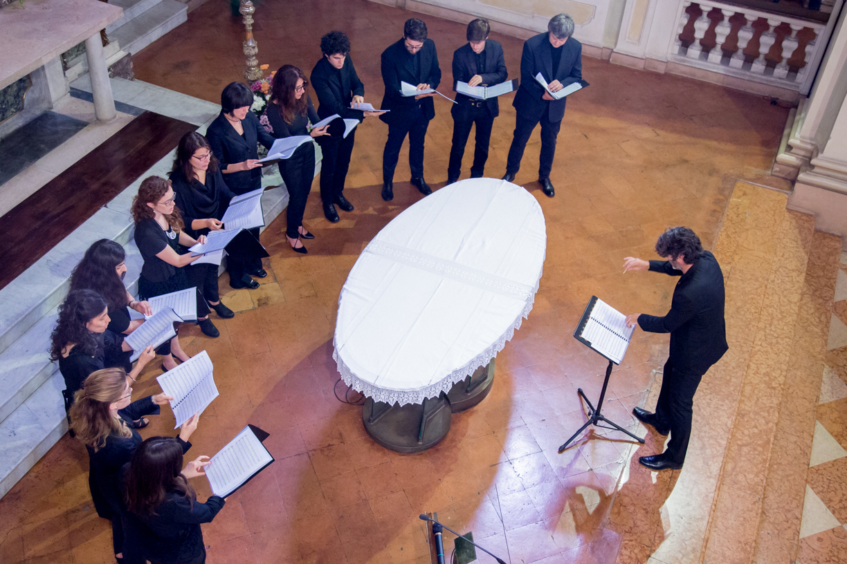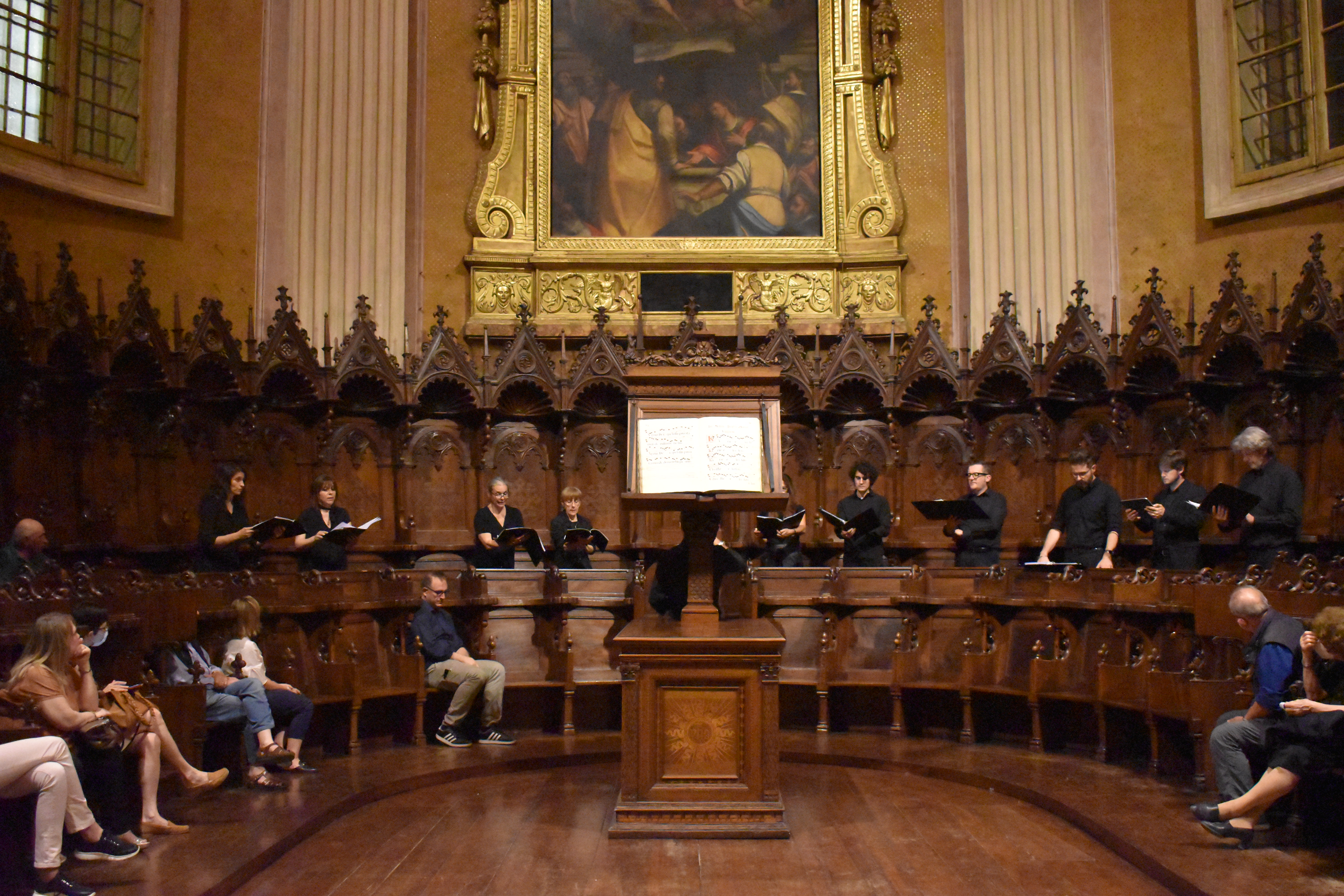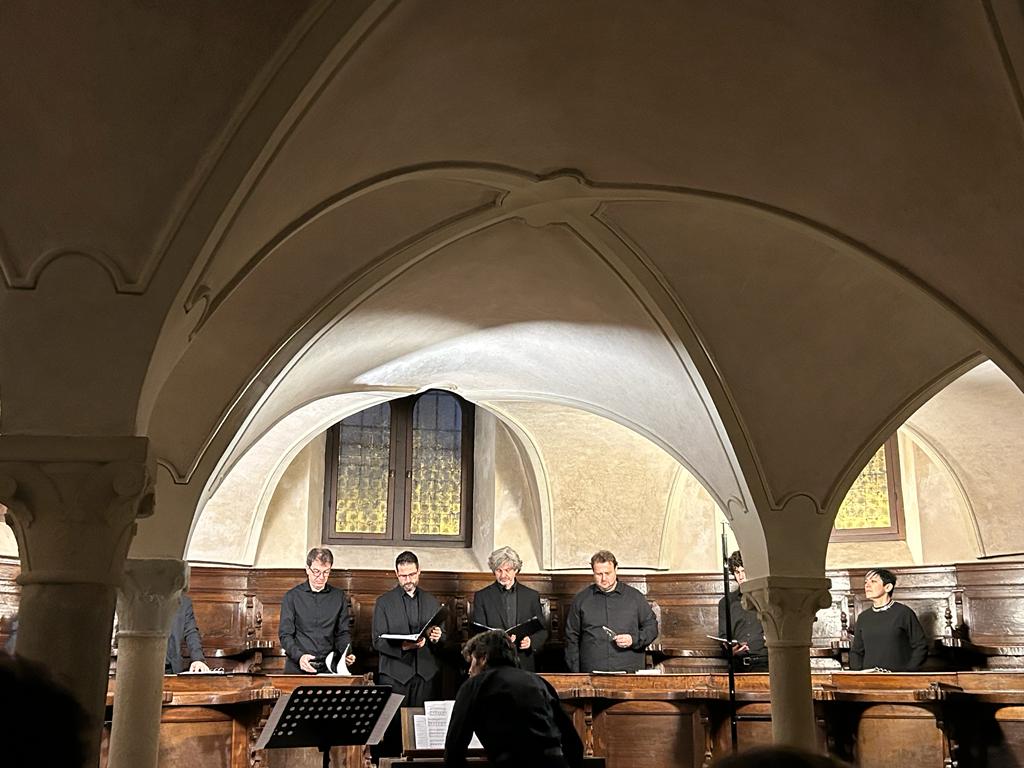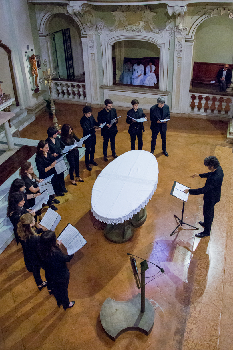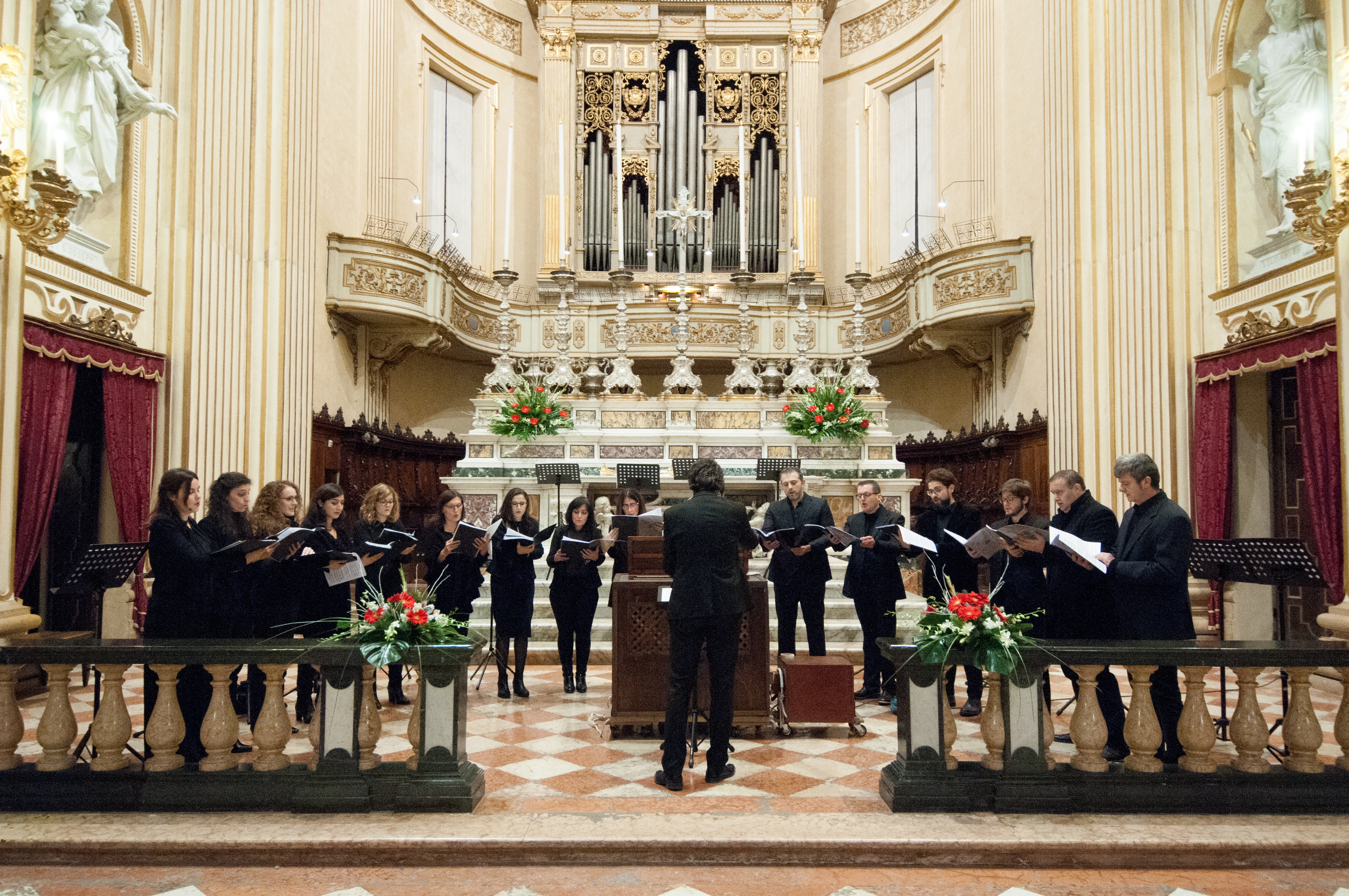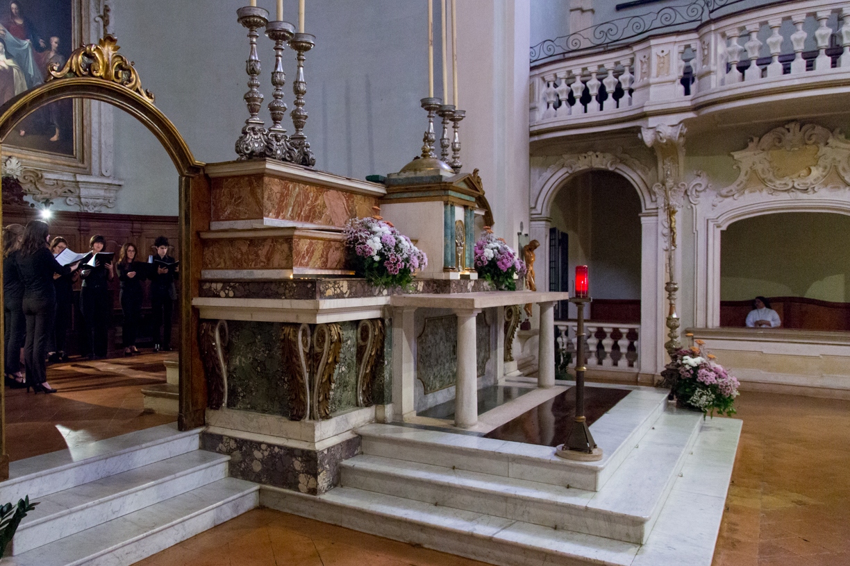 Fotografie del concerto Passione, morte e risurrezione, in canto gregoriano e polifonia eseguito domenica 30 Settembre 2018 nella splendida chiesa dei Santi Girolamo e Vitale a Reggio Emilia, nell’ambito della Rassegna Soli Deo Gloria – Organi, Suoni e Voci della Città