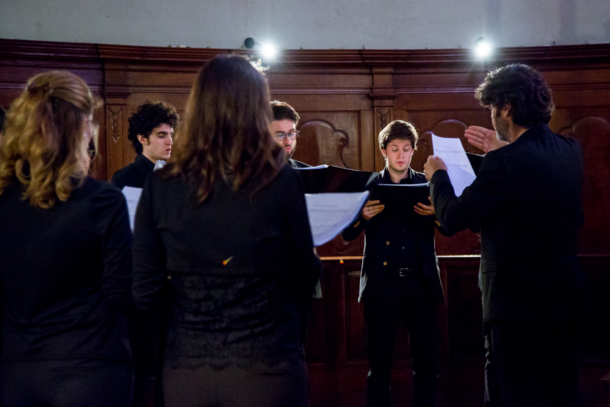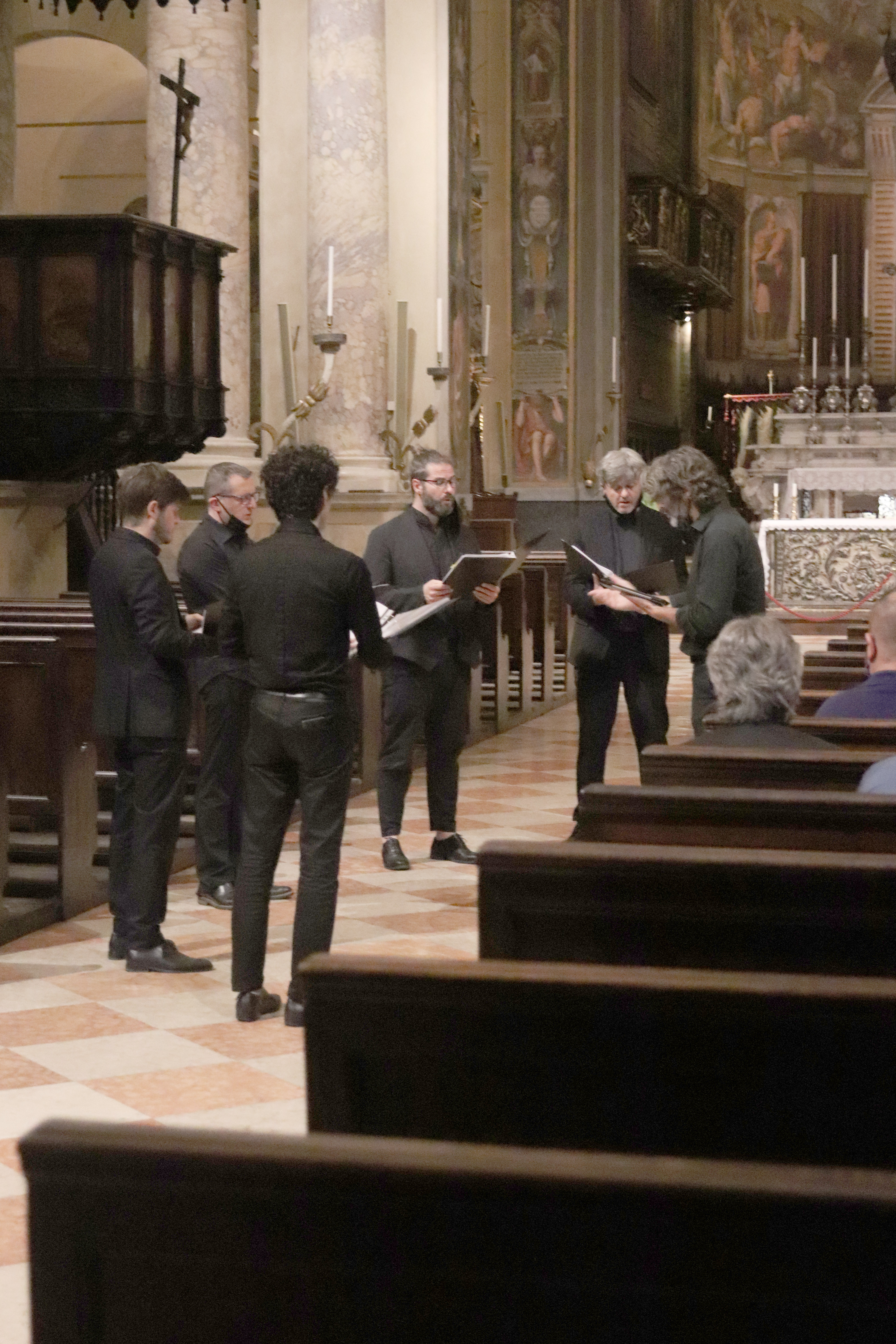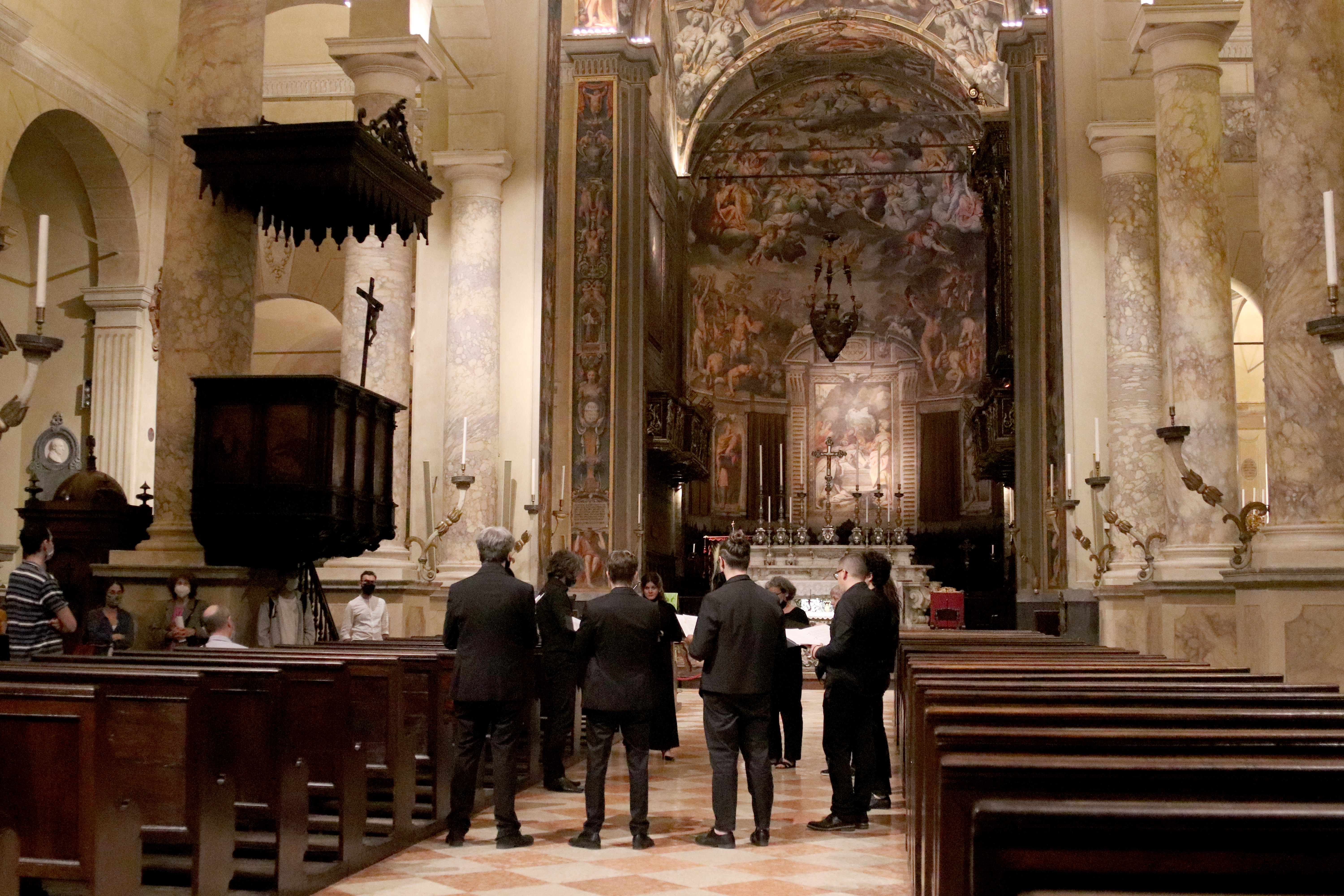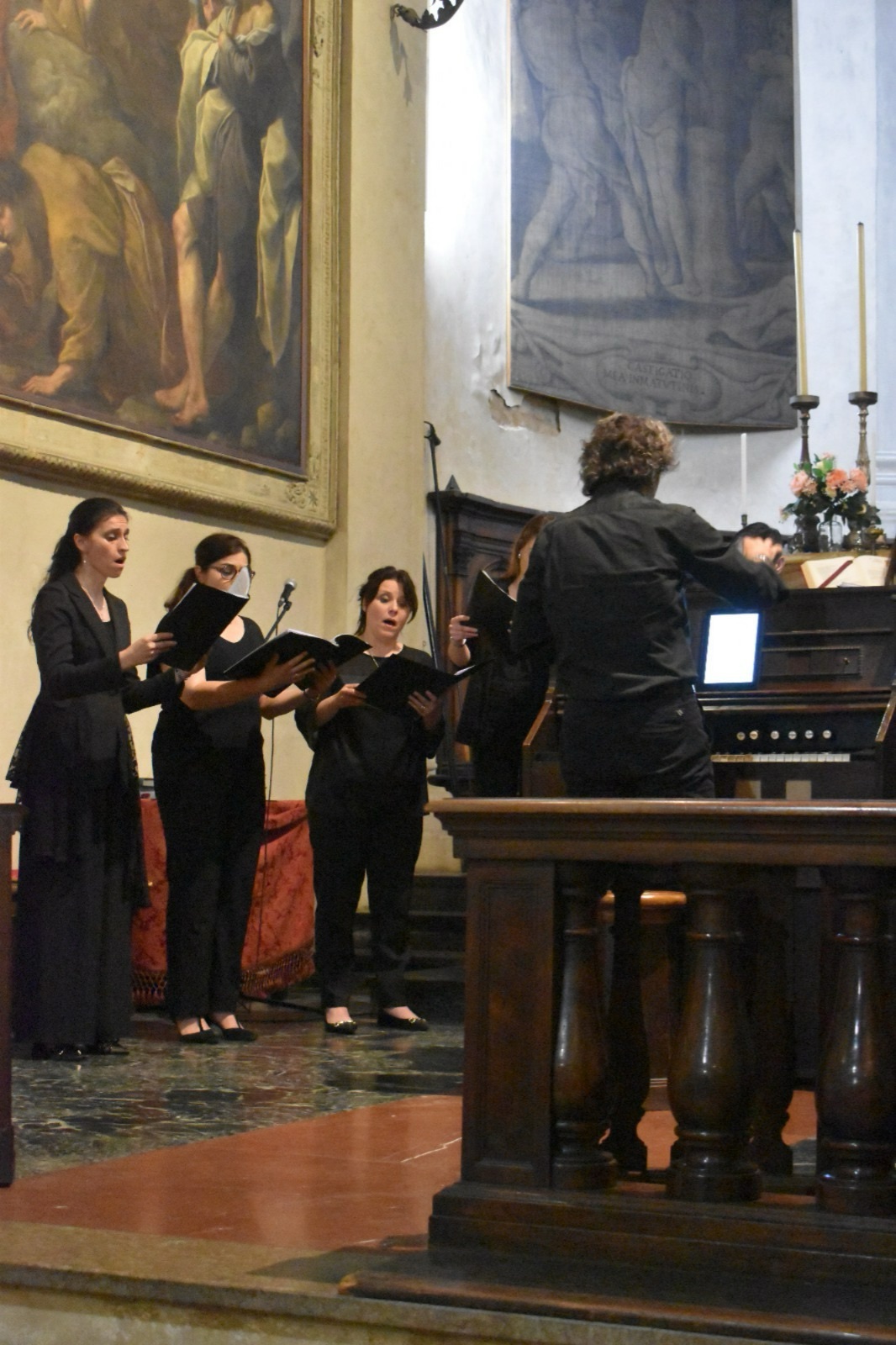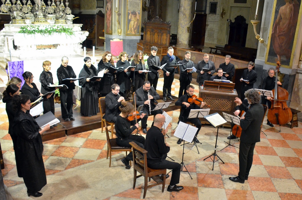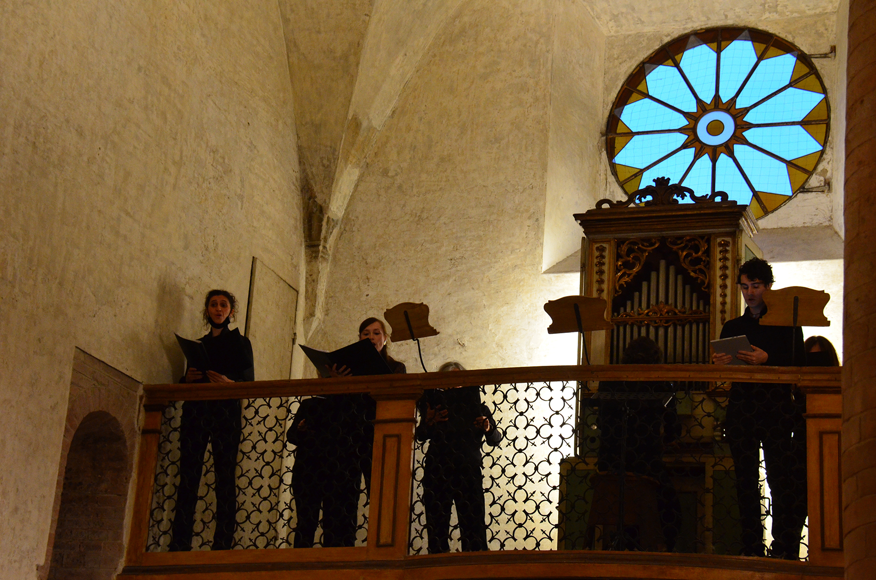 Fotografie del concerto Passione, morte e risurrezione, in canto gregoriano e polifonia eseguito domenica 30 Settembre 2018 nella splendida chiesa dei Santi Girolamo e Vitale a Reggio Emilia, nell’ambito della Rassegna Soli Deo Gloria – Organi, Suoni e Voci della Città