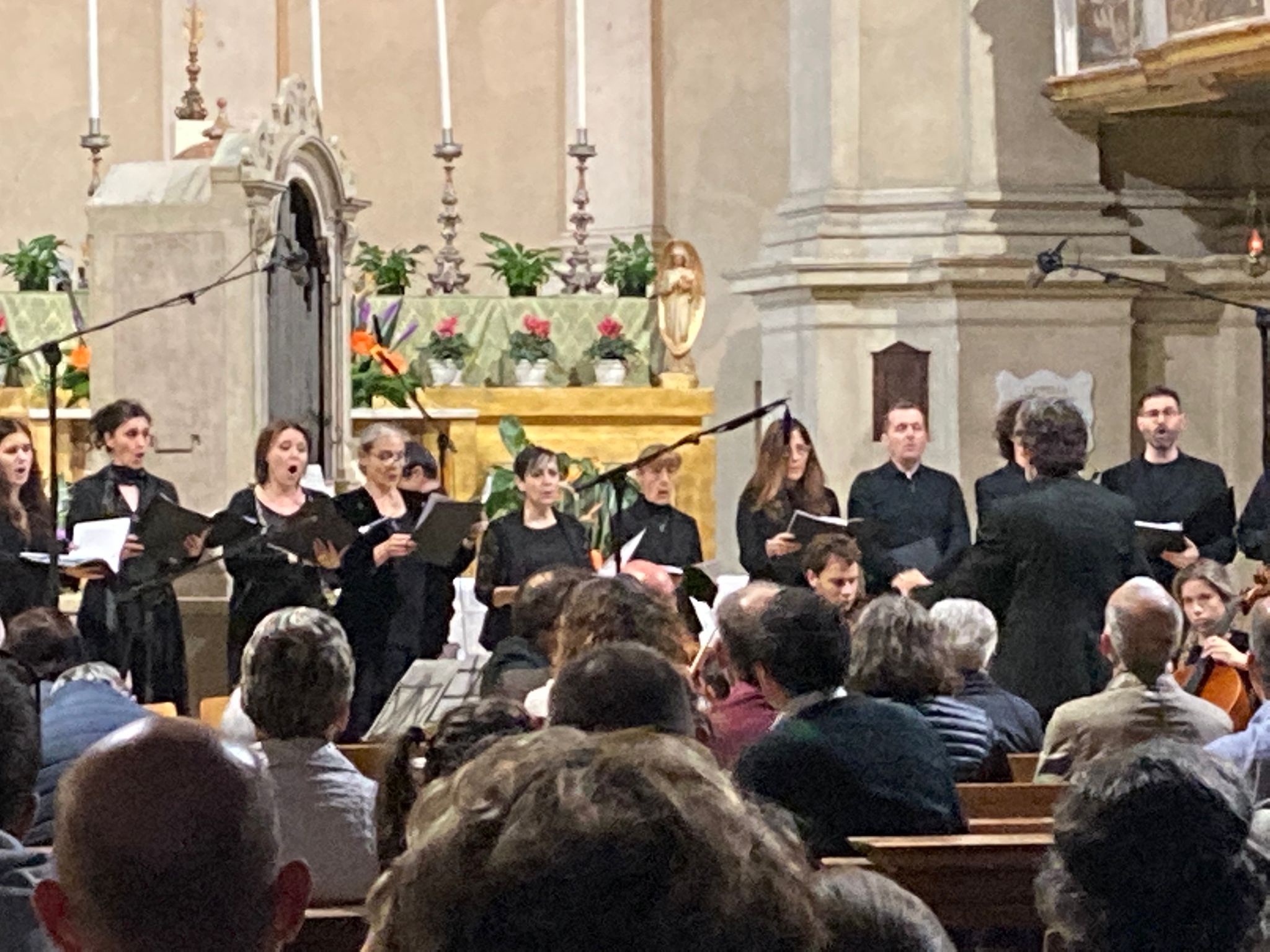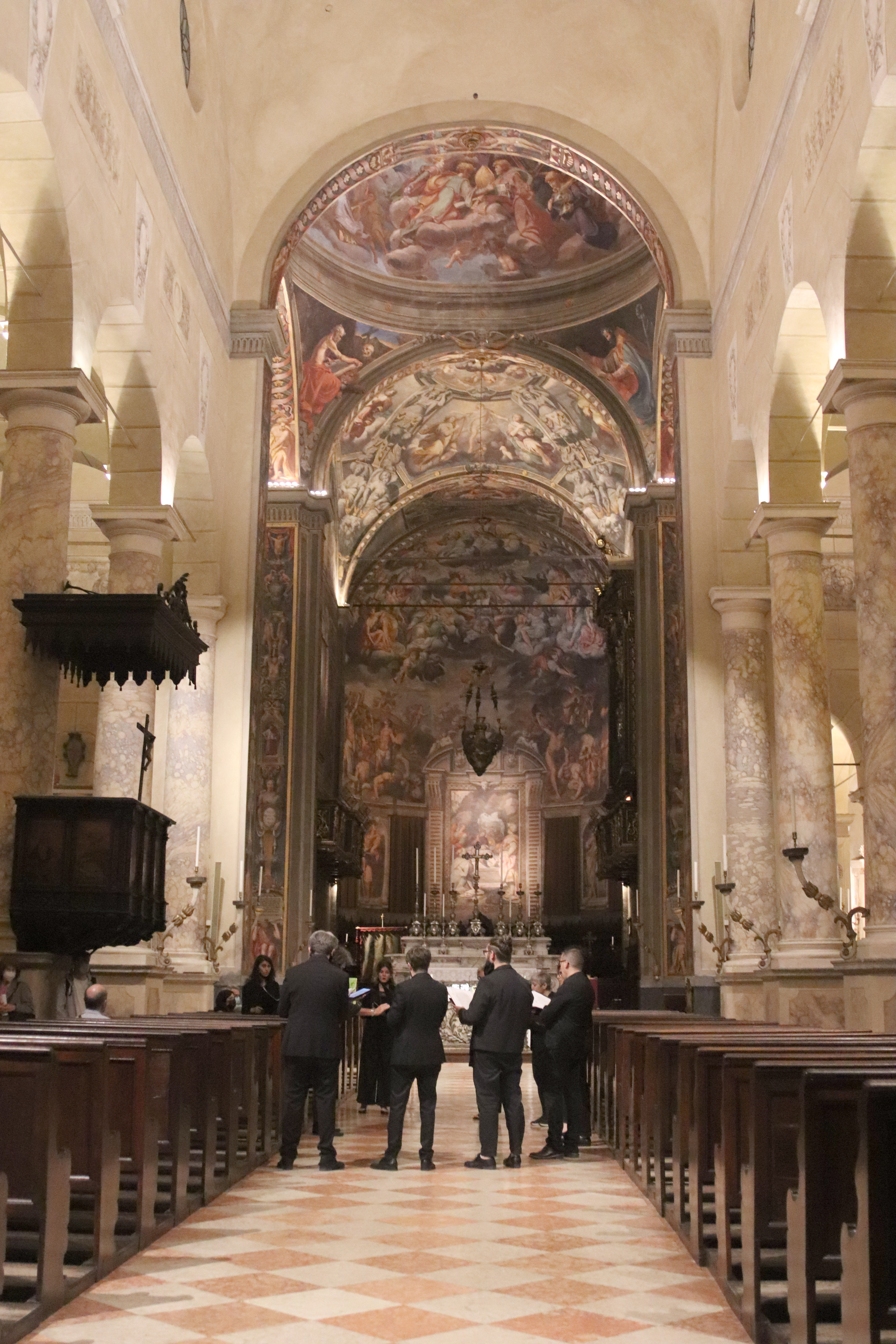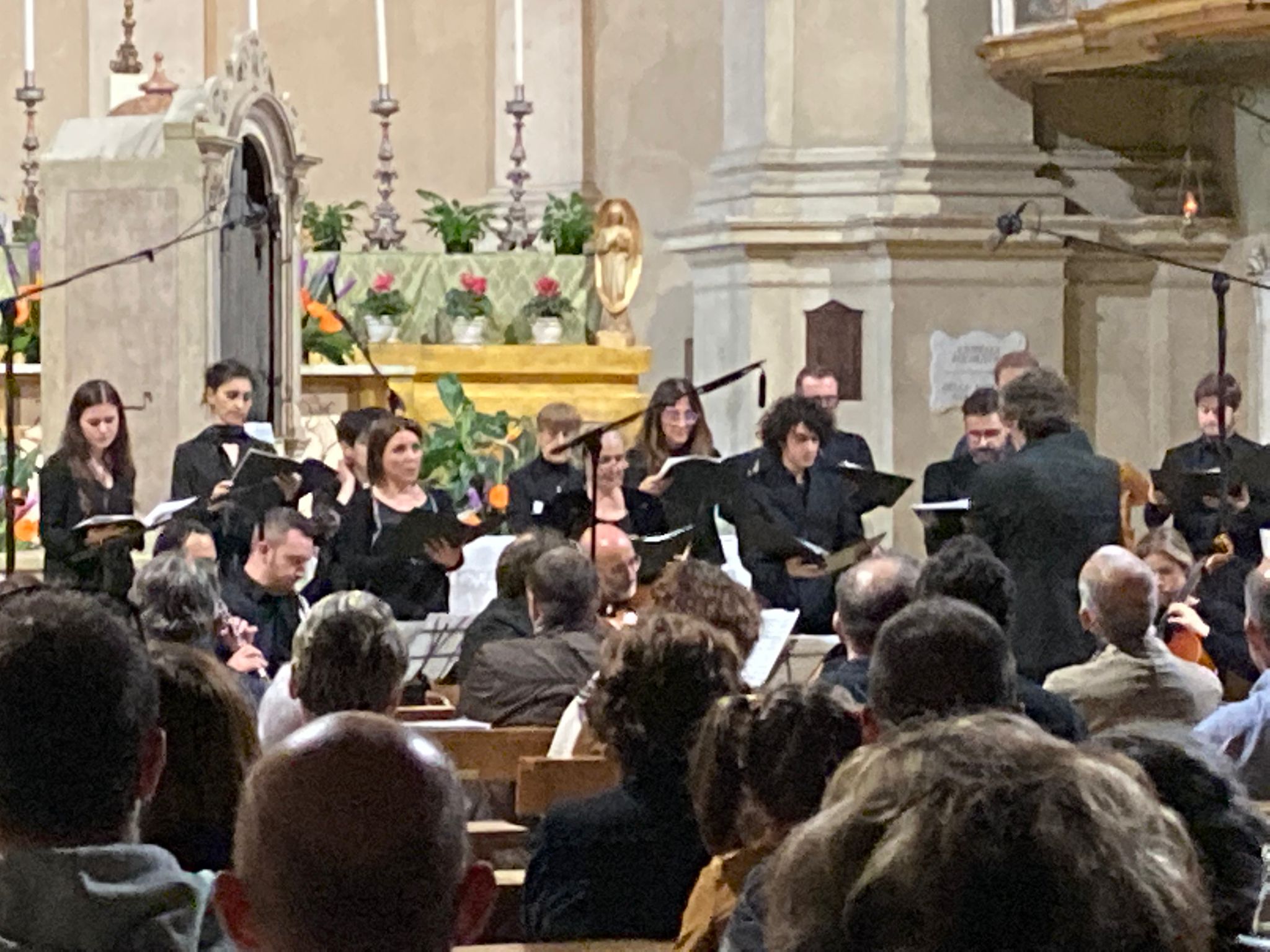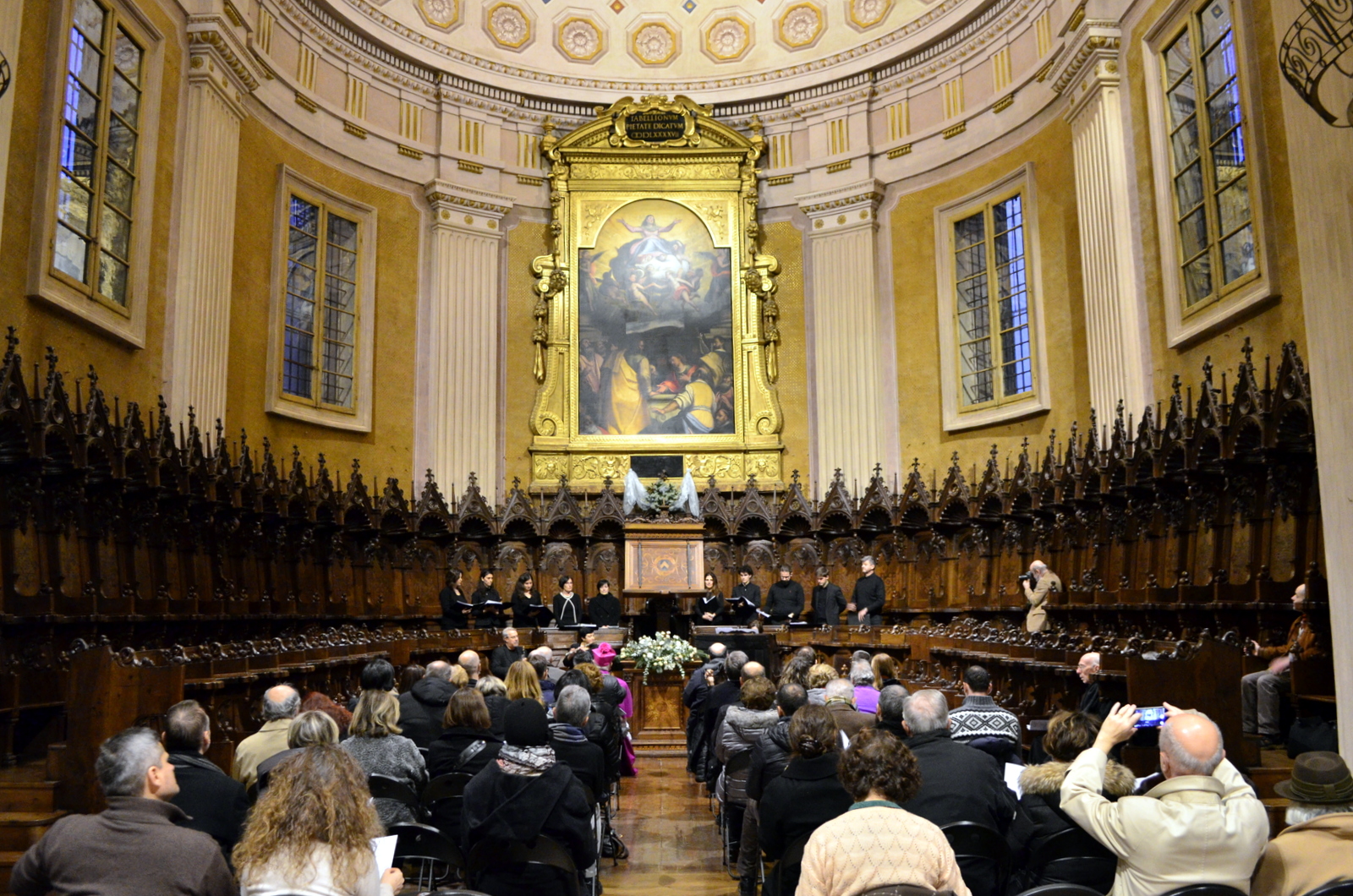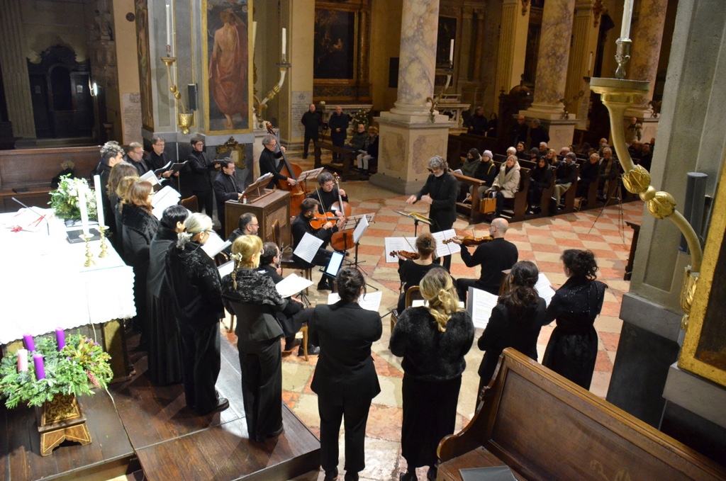 Fotografie del concerto Passione, morte e risurrezione, in canto gregoriano e polifonia eseguito domenica 30 Settembre 2018 nella splendida chiesa dei Santi Girolamo e Vitale a Reggio Emilia, nell’ambito della Rassegna Soli Deo Gloria – Organi, Suoni e Voci della Città