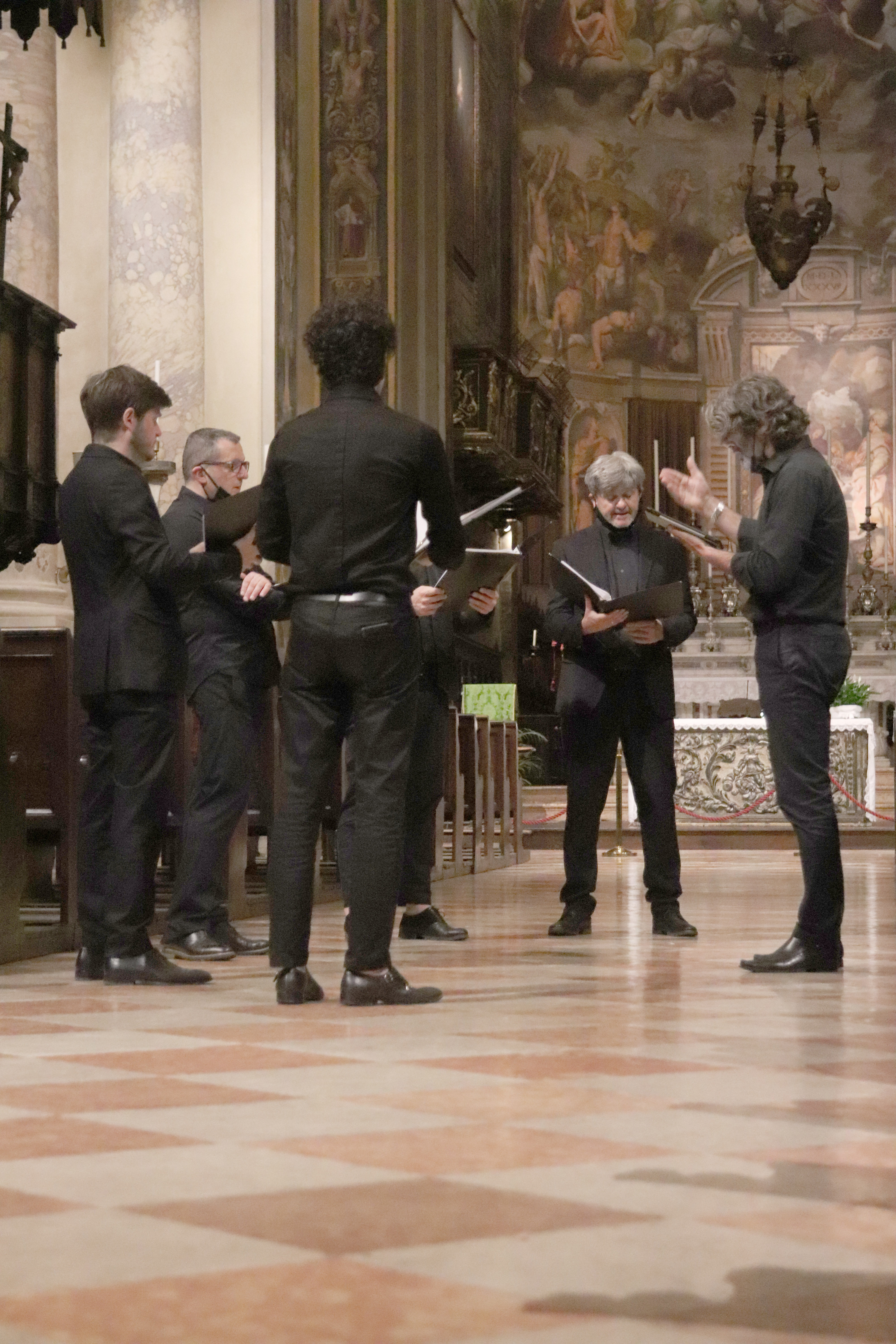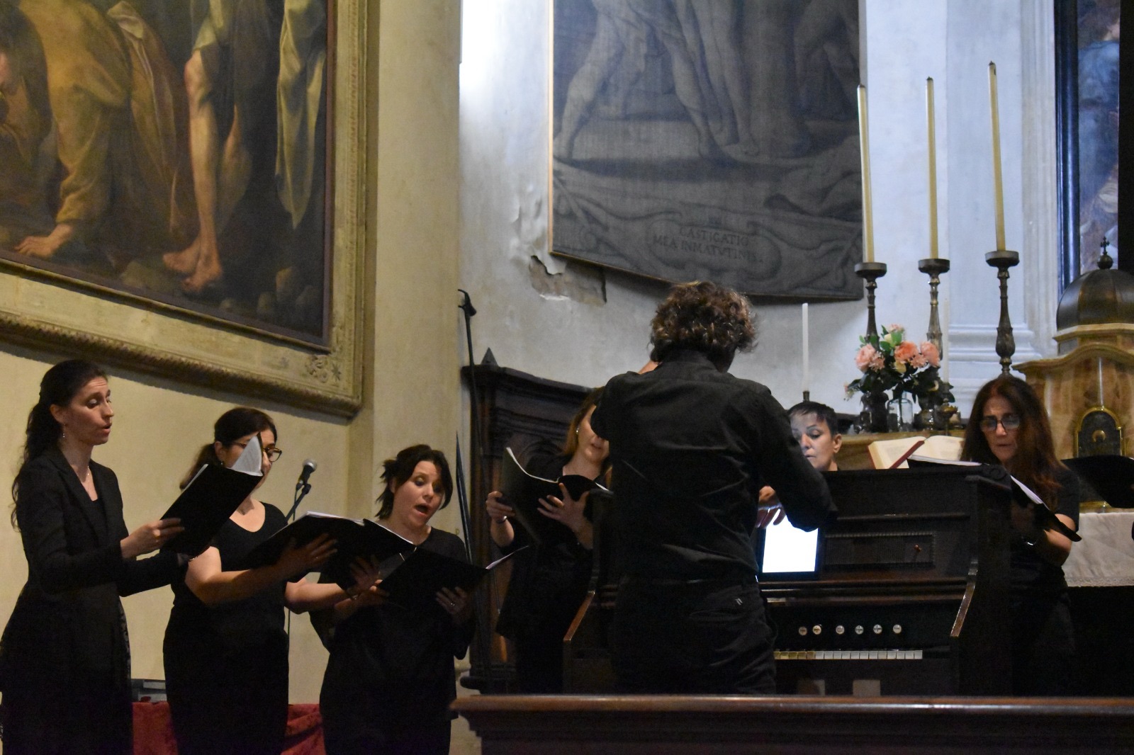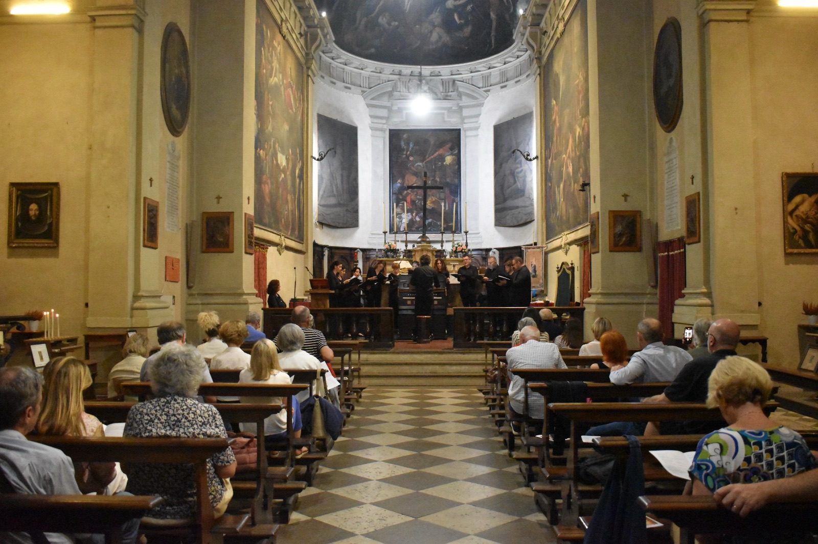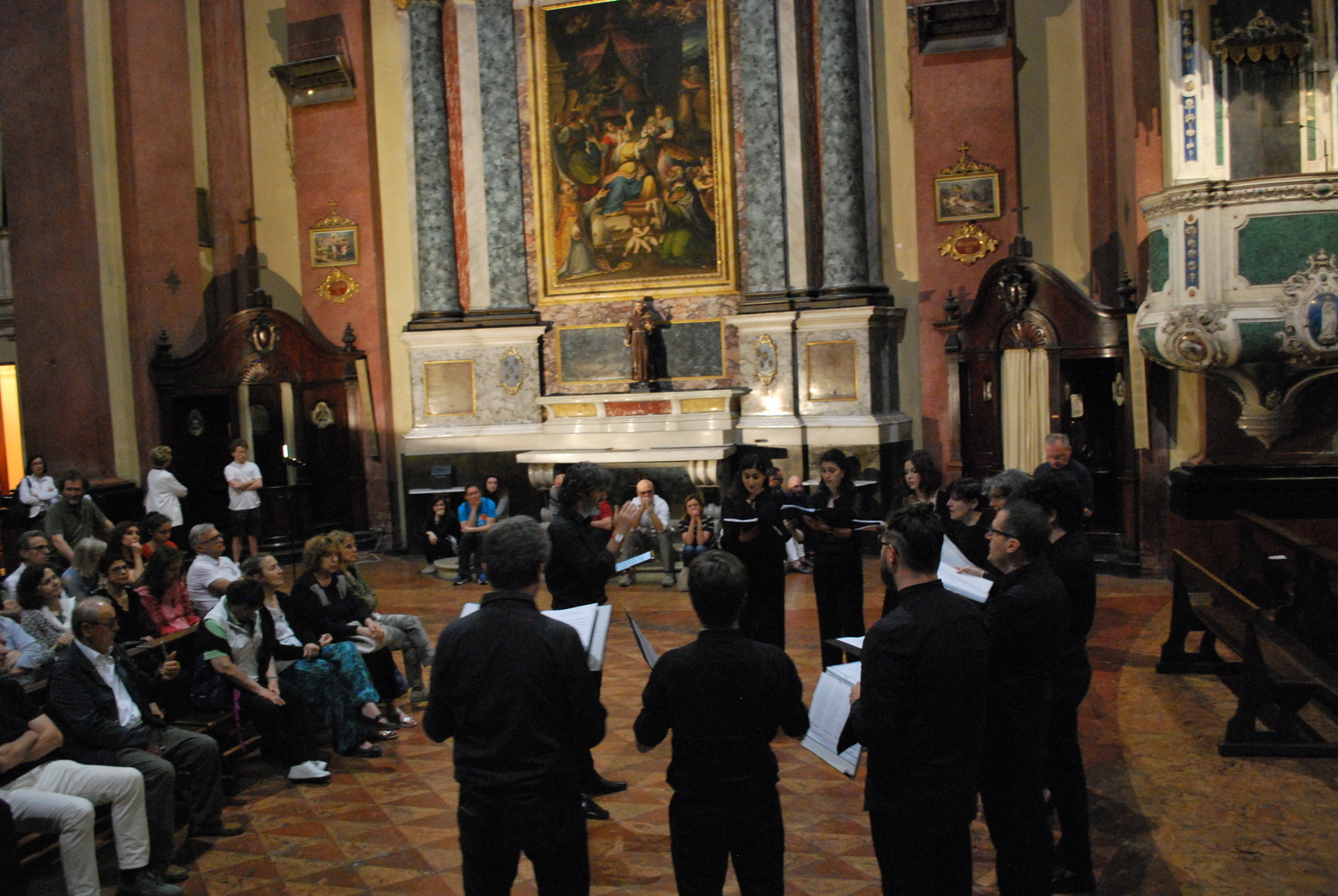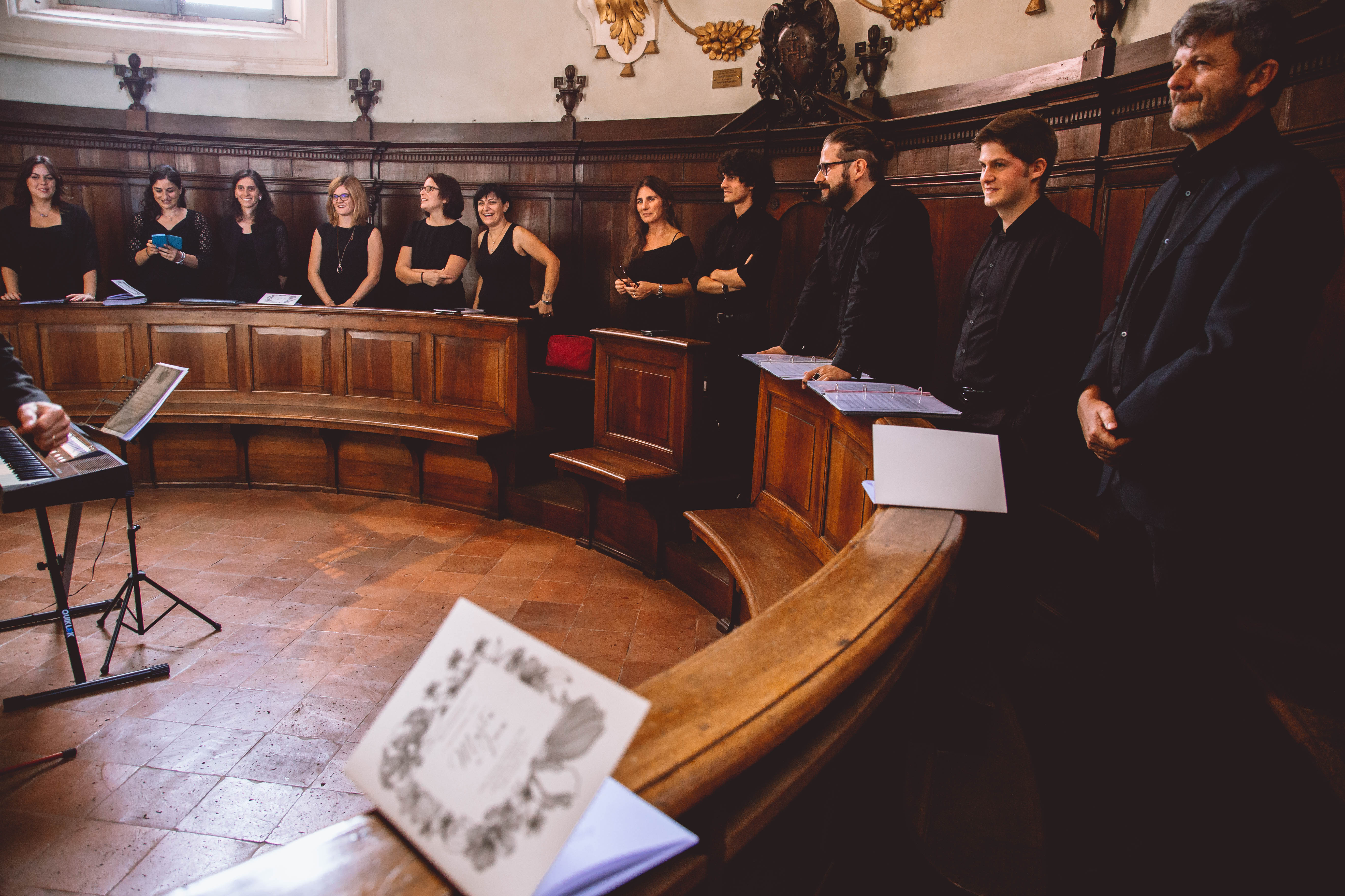 Fotografie del concerto Passione, morte e risurrezione, in canto gregoriano e polifonia eseguito domenica 30 Settembre 2018 nella splendida chiesa dei Santi Girolamo e Vitale a Reggio Emilia, nell’ambito della Rassegna Soli Deo Gloria – Organi, Suoni e Voci della Città