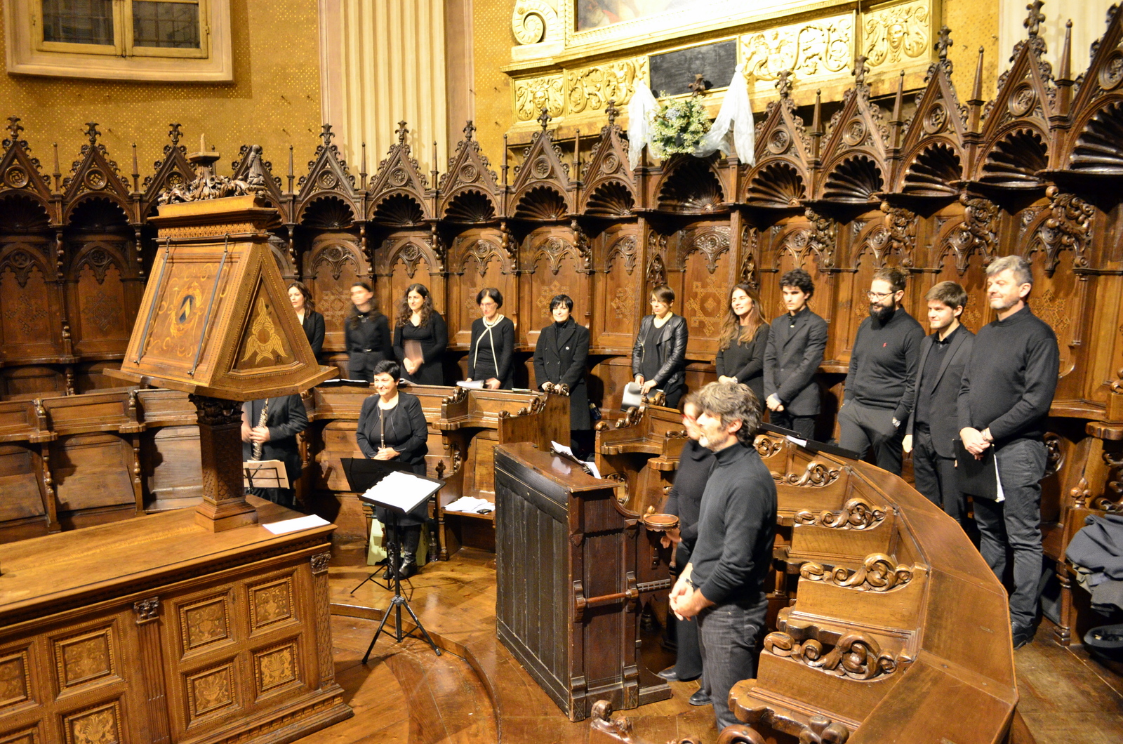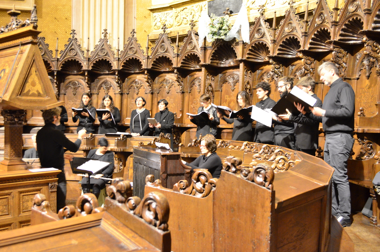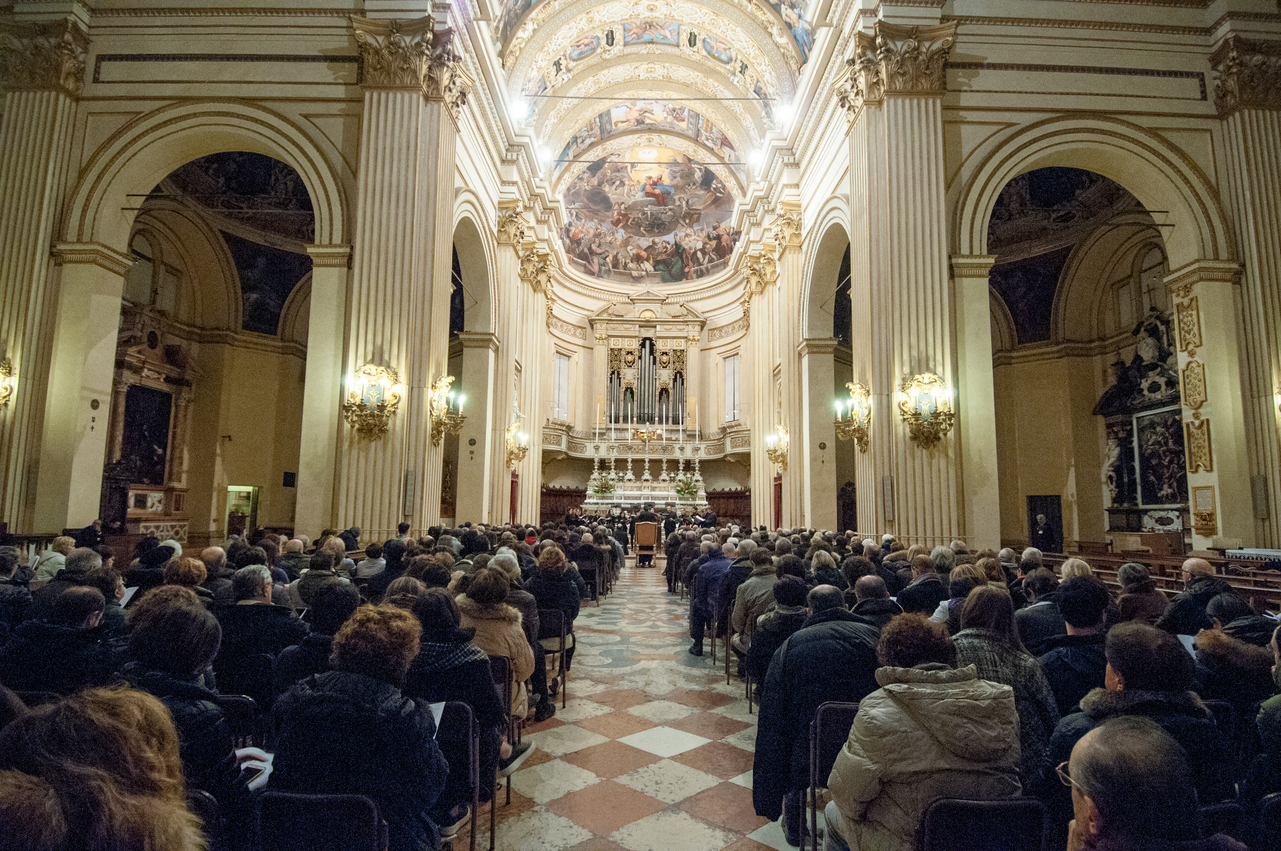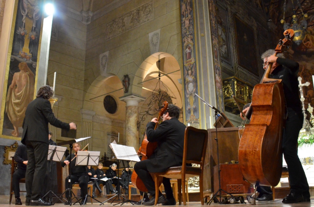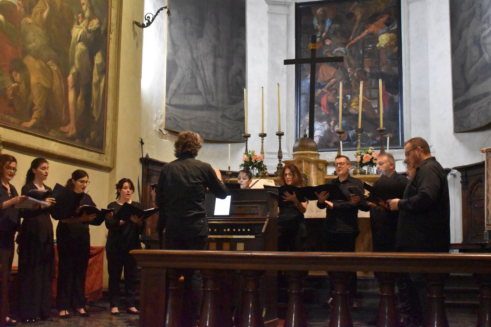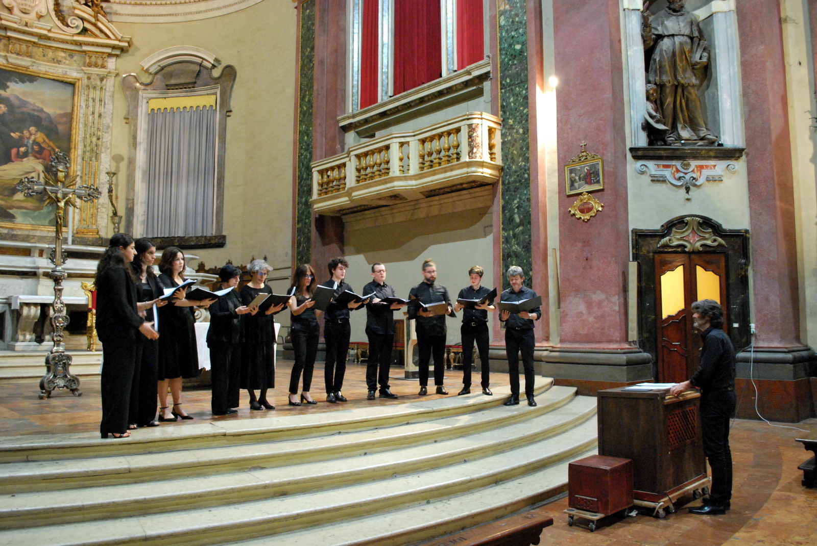 Fotografie del concerto Passione, morte e risurrezione, in canto gregoriano e polifonia eseguito domenica 30 Settembre 2018 nella splendida chiesa dei Santi Girolamo e Vitale a Reggio Emilia, nell’ambito della Rassegna Soli Deo Gloria – Organi, Suoni e Voci della Città