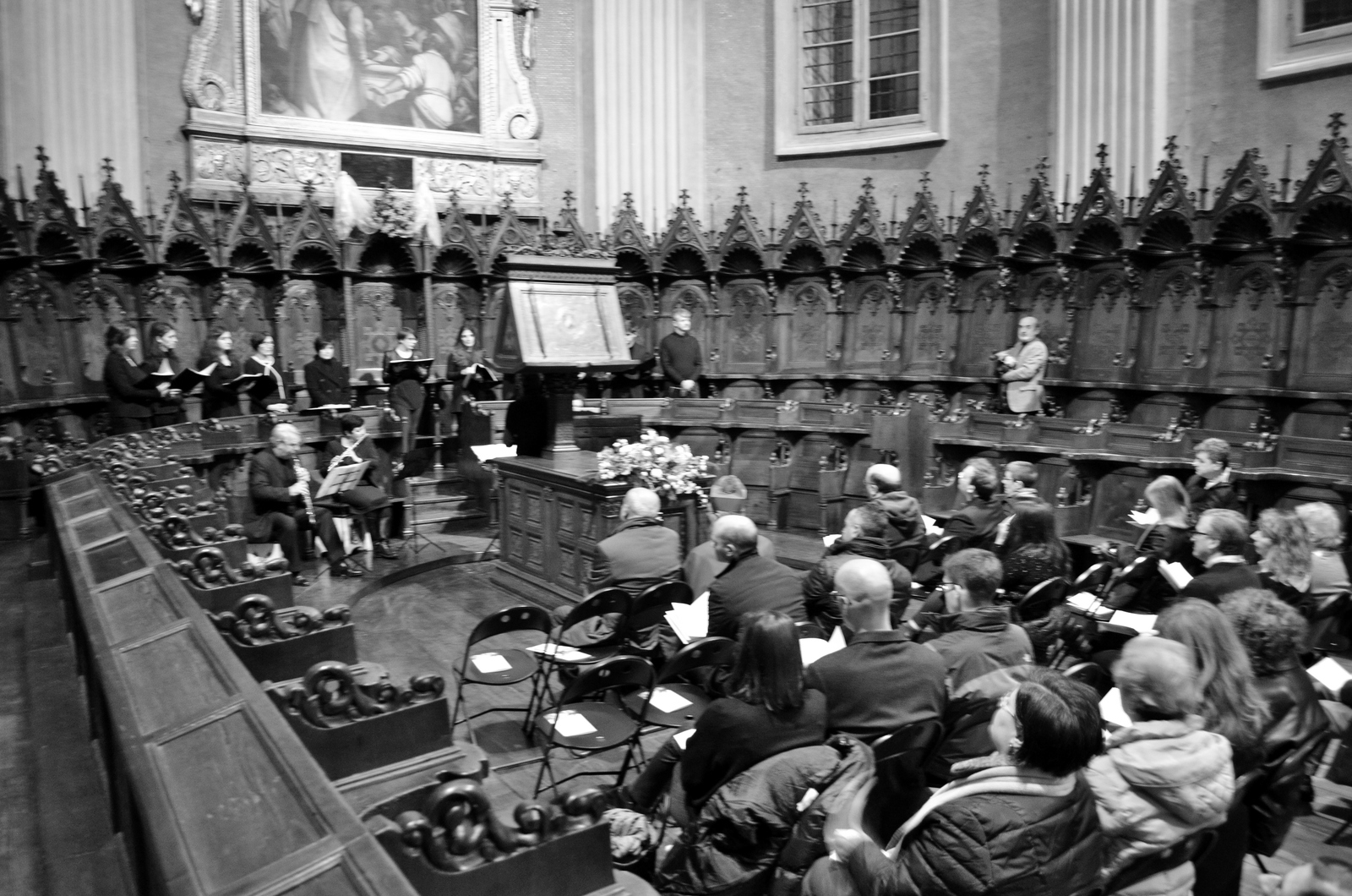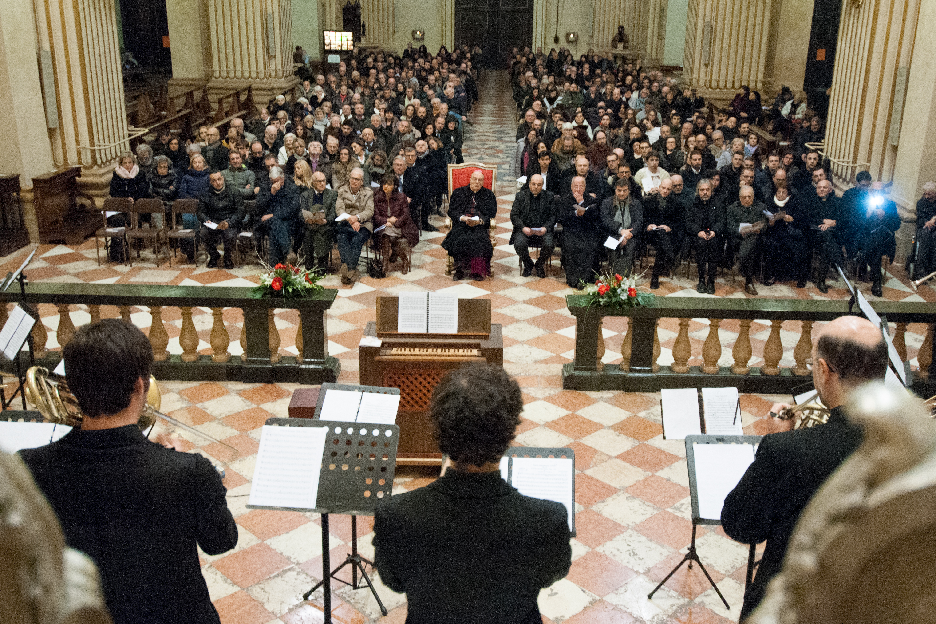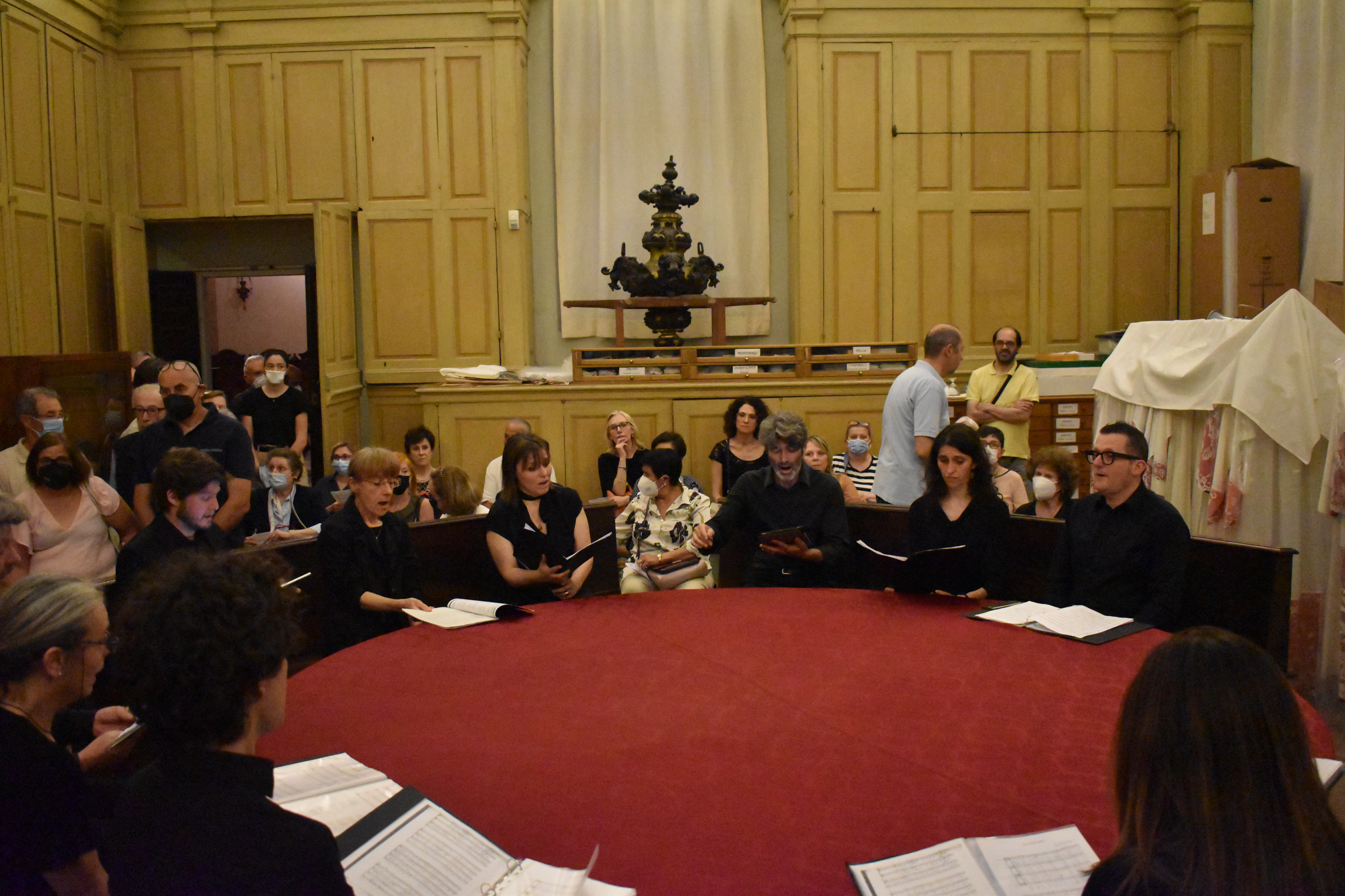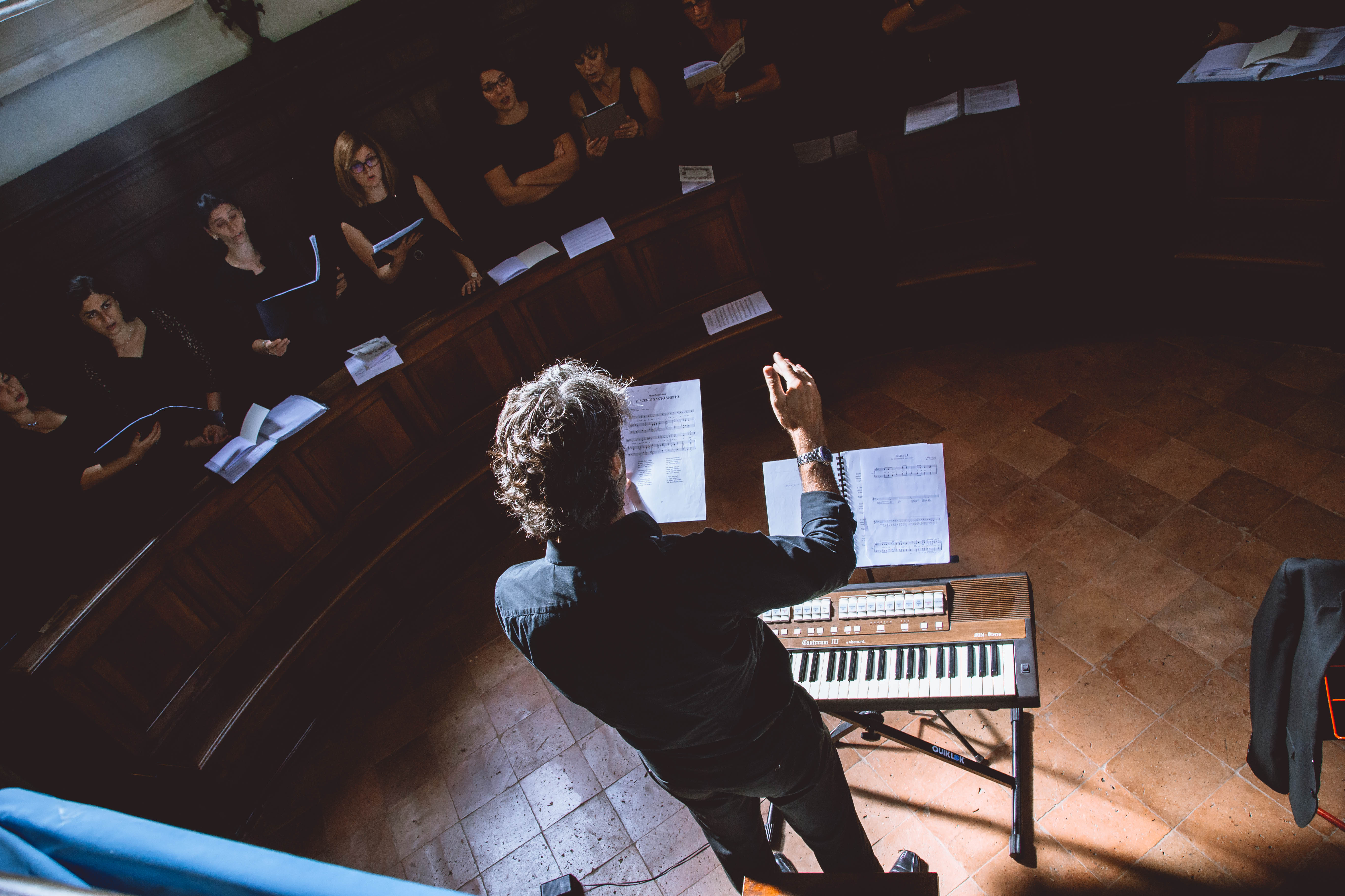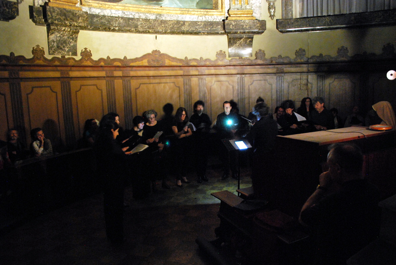 Fotografie del concerto Passione, morte e risurrezione, in canto gregoriano e polifonia eseguito domenica 30 Settembre 2018 nella splendida chiesa dei Santi Girolamo e Vitale a Reggio Emilia, nell’ambito della Rassegna Soli Deo Gloria – Organi, Suoni e Voci della Città